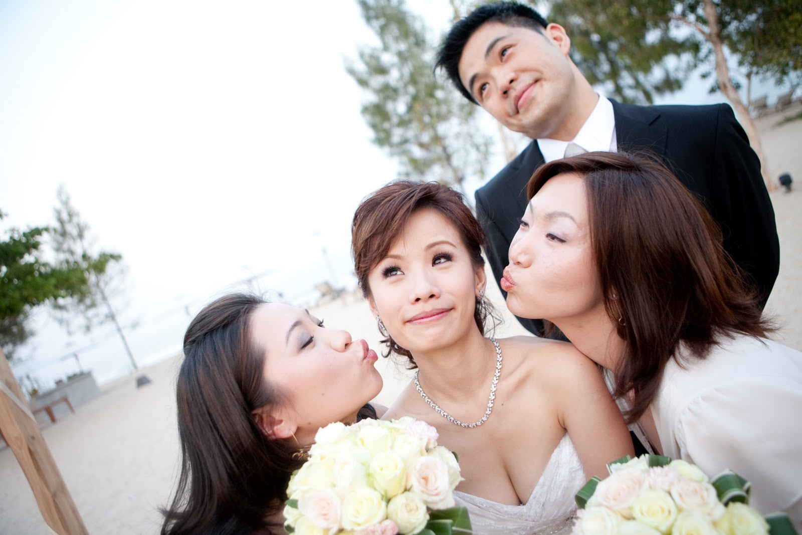 其實貪杯香檳以後,我的新郎已經有點搖晃,所以當海灘剩下三兩人,攝影師提議來為我們拍幾張現場婚紗照時,就出現了許多姿勢搖擺和表情放鬆的照片,甚至有一張是我婆婆和我們一起雙手挫臉蛋裝可愛,身體後仰45度角的奇特體態,我怎麼想都想不通當時我們三人腦袋裡面想的是什麼,後來就歸咎與龍先生全家骨頭很軟,是天生的瑜珈奇葩家族,所以那個照片是宣誓我加入這個家庭的決心吧!(至於裝可愛的部份,我真的沒有辦法解釋。)